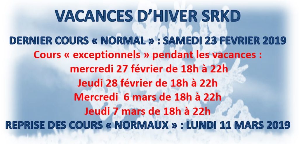 Dernier cours de l’année 2023 => jeudi 21 décembre.